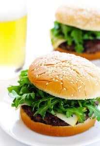 - Remove from heat and serve the burgers on buns immediately, topped with Arla Muenster sliced cheese, fresh arugula, and/or any other toppings that sound good to you.