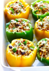 So today I thought I’d share with you one ofย my new favorite quick and easy go-to meals for weeknight dinners or entertaining — these 5-Ingredient Mexican Quinoa Stuffed Peppers.