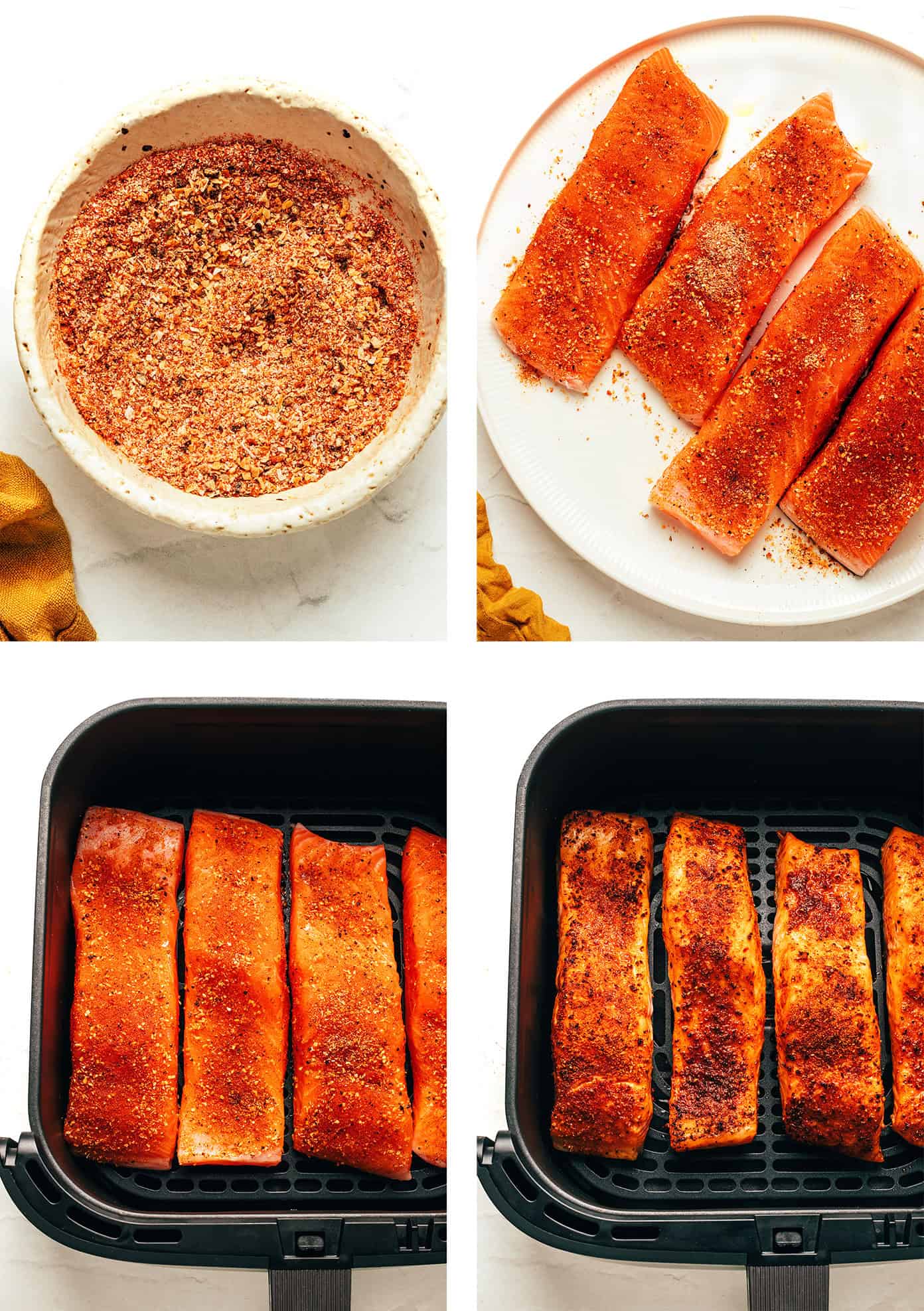 - Maple Chipotle Salmon: Stir together maple syrup, chipotle chili powder, and smoked paprika, then brush it over the salmon before air frying for a sweet-meets-smoky glaze.