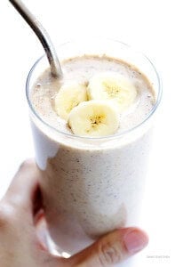 *Feel free to omit the Greek yogurt if making this smoothie vegan, and add in 1/4 cup extra almondmilk instead.
