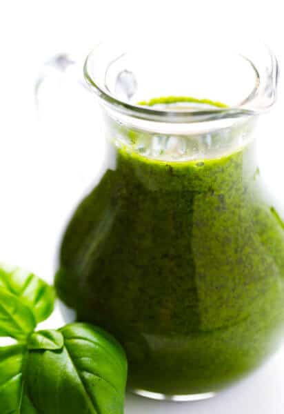 This Basil Vinaigrette recipe is quick and easy to make, and bursting with the best fresh basil flavor. Perfect for drizzling on salads, pizzas, pastas, soups, grilled meat, veggies and more!