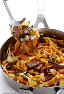 Chinese beef chow fun features tender beef and noodles in the most delicious stir-fry sauce.