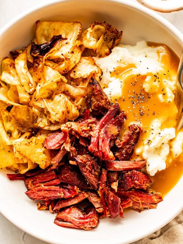 - Shred the beef (optional).ย Uncover and shred the beef into bite-sized pieces, if you’d like, and toss it with the broth. Or alternately, you can leave it in larger chunks. Then give it a taste and season with extra salt and pepper, if needed.