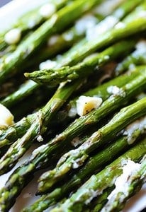 It paired perfectly with the flavor of the roasted asparagus, and also melted slightly to be a nice and soft topping. If you want it completely melted, just add it at the beginning of the roasting time. Easy peasy! Or wait, easy asparagusy?