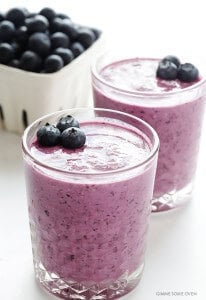 This Blueberry Muffin Smoothie is made with fresh and healthy ingredients, yet tastes like the blueberry muffin flavors that inspired it!