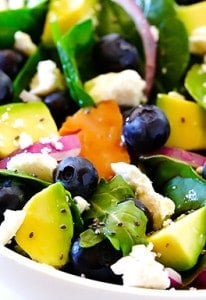 Brain Power Salad (Spinach Salad with Salmon, Avocado and Blueberries)