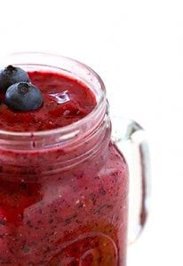 Healthy eating month continues on Gimme Some Oven today with a smoothie I’ve been hooked on lately. It’s basically a blueberry avocado smoothie recipe, but I like to call it my brain power smoothie because it’s chocked full of tasty ingredients that are good for brain health.
