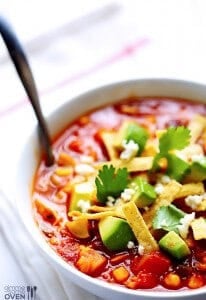 - Serve warm garnished with lots of fresh avocado, cilantro, tortilla chips and queso fresco.