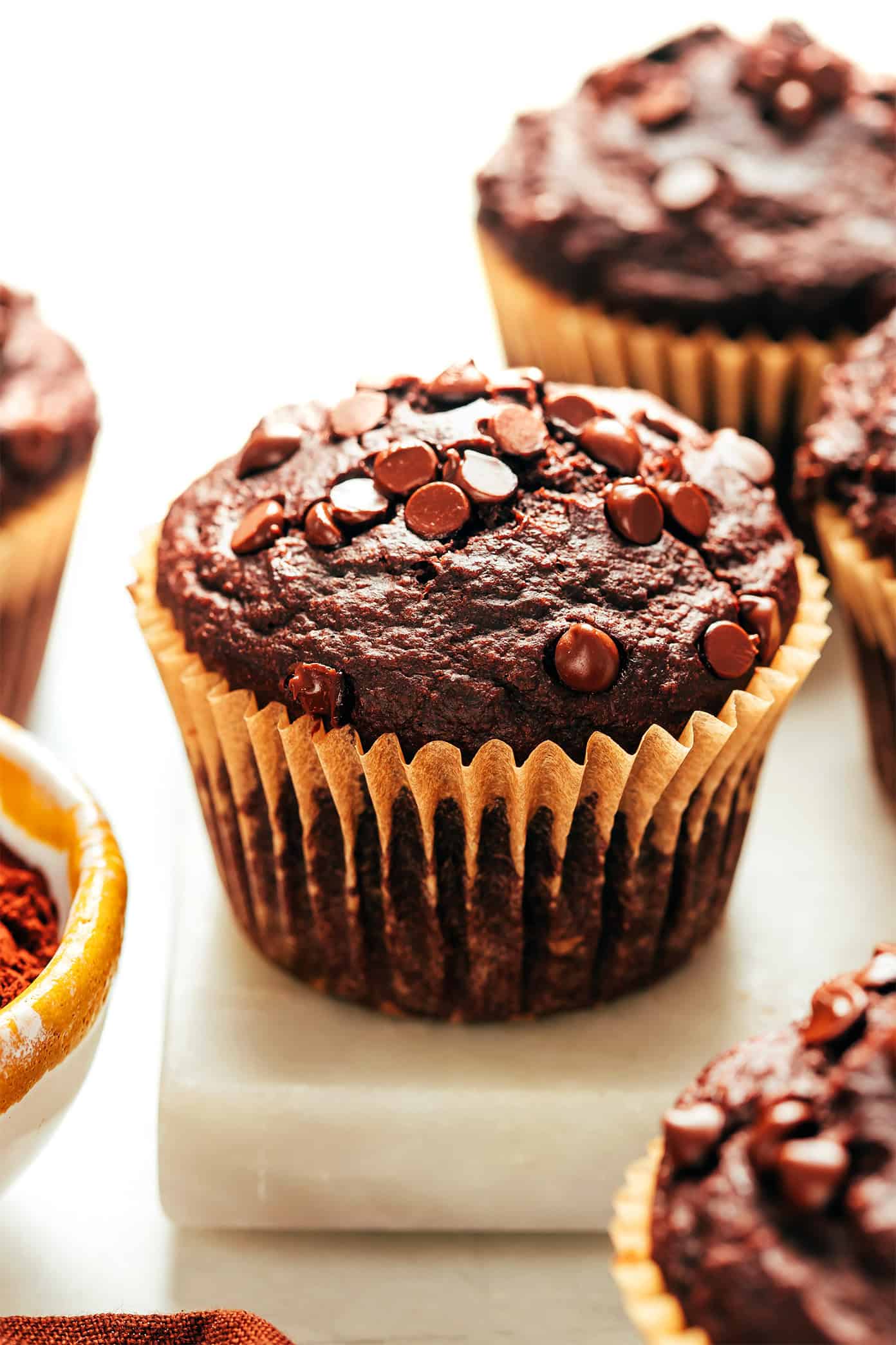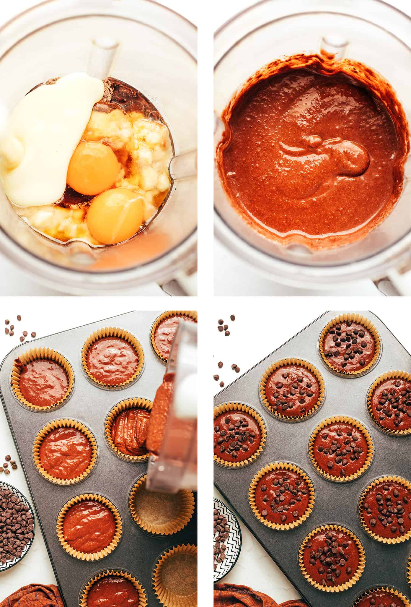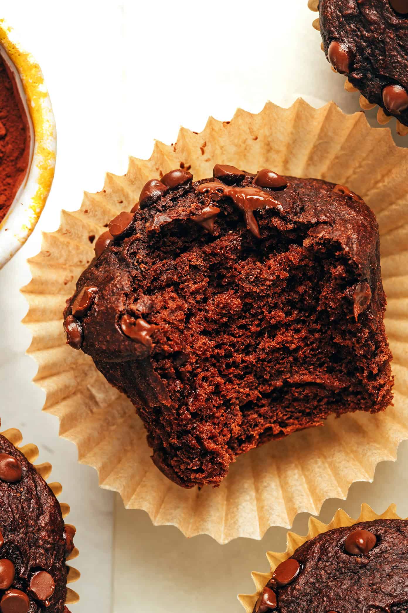 They’re still naturally gluten-free and dairy-free, and sweetened mostly with ripe bananas plus a hint of maple syrup. And just like the originals, they couldn’t be easier to make. All you need is a blender (or mixing bowl), some ripe bananas, and about 10 minutes of prep time. Then after a quick bake in the oven, you’ll have a batch of soft, chocolatey, feel-good muffins ready to go — perfect for breakfast, snacks, or anytime a chocolate craving hits.