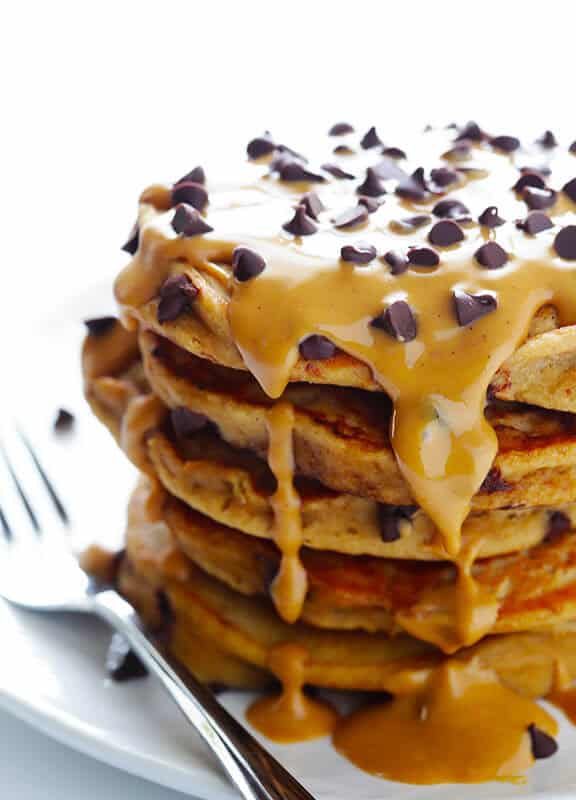 Whole Wheat Peanut Butter Chocolate Chip Pancakes