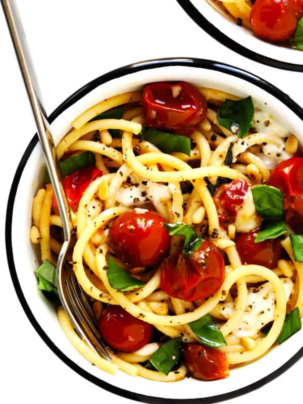 Pasta with Burst Cherry Tomatoes, Burrata and Basil