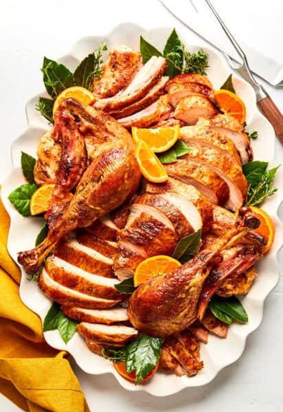 Iโve gathered all of my best tips and tricks below to hopefully take all of the guesswork out of the process. And Iโve also put together a turkey timeline, a step-by-step carving guide (coming tomorrow), plus instructions for making gravy from the drippings. (Or my favorite mushroom gravy is a fantastic option if you’d like to make the gravy ahead of time!) My hope is that this guide gives you everything you need to walk into your turkey day feeling calm, prepared, and genuinely excited about the feast ahead.