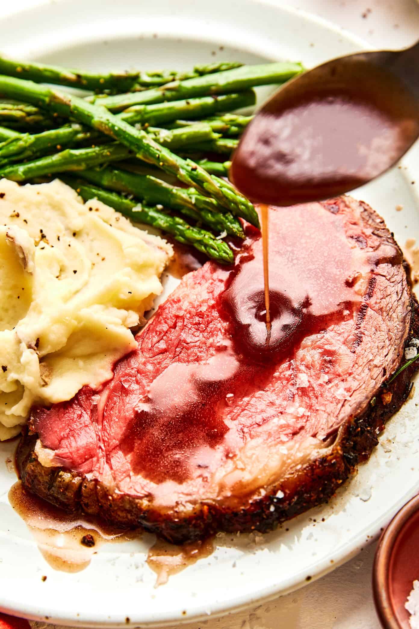 - Make the au jus while the roast rests. Use every bit of those browned drippings — they’re liquid gold!