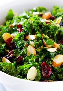 Kale Salad with Warm Cranberry Almond Vinaigrette