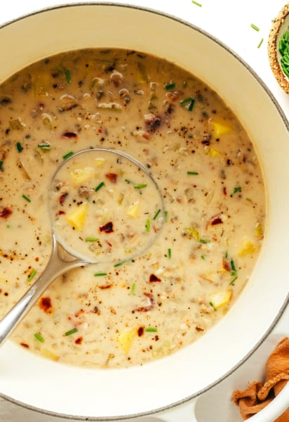 - Make it gluten-free. Just skip adding the flour, and instead, mash (or puree) half of the potatoes in the soup to help thicken it.
