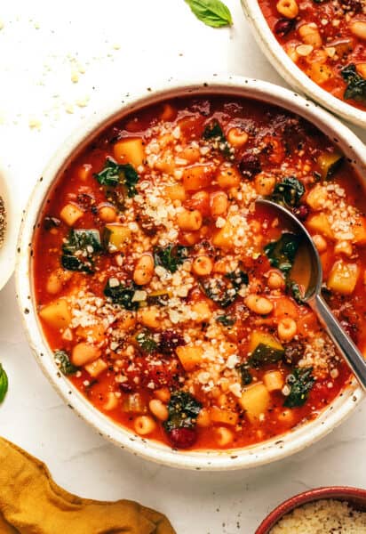 I made TWO of your soups this weekend. French Onion on Saturday and this Minestrone on Sunday. They were both super delicious but this Minestrone was the clear winner of the two. It was a snow day for us yesterday and my daughter, who typically doesn’t choose leftovers, picked the leftovers of the Minestrone for dinner last night. That is a HUGE WIN for both of us!! Thanks for the continued great content, your site is a big “go to” in our house!!