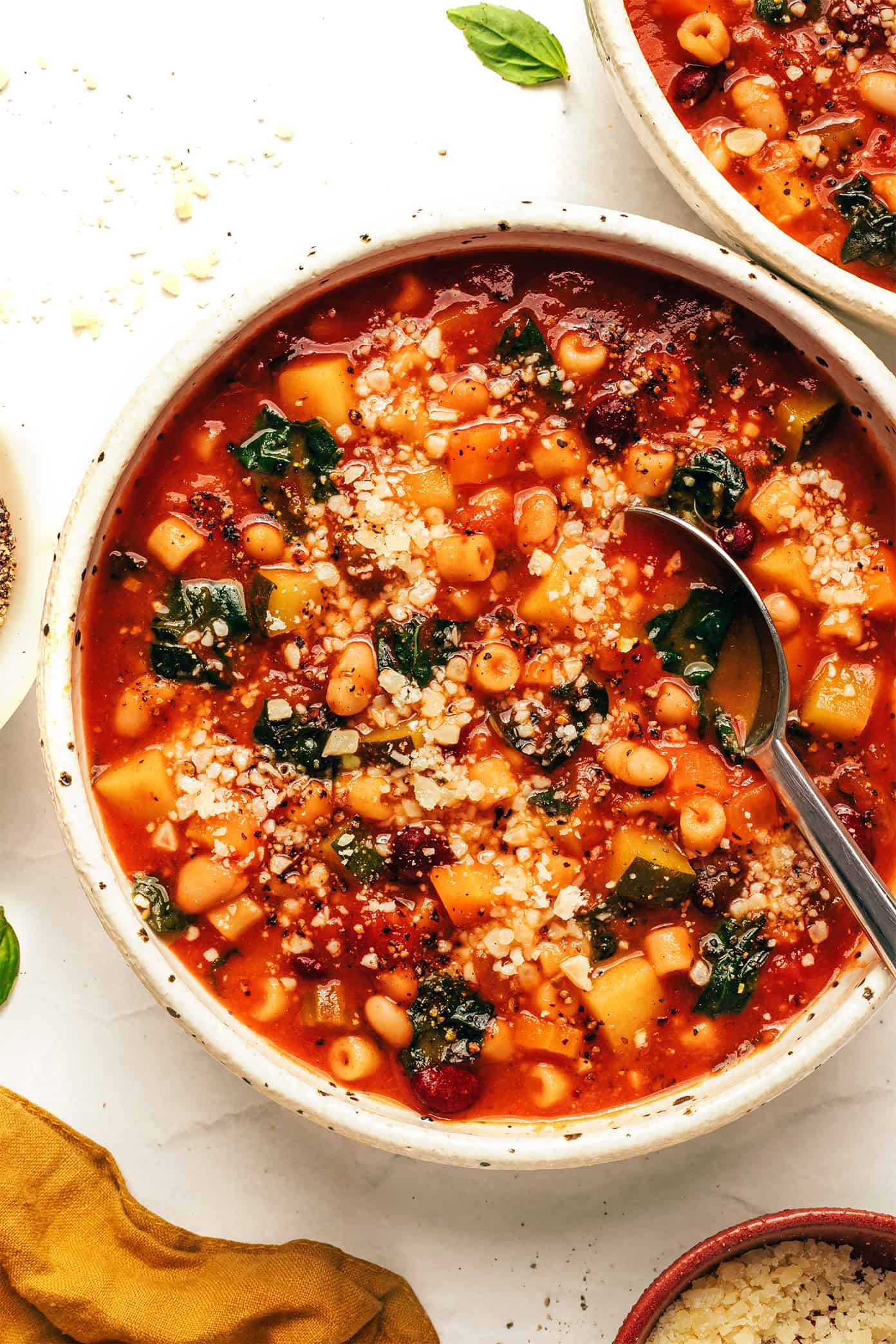 It’s been a lifelong favorite of mine — the soup I always ordered at our neighborhood Italian restaurant growing up. Back then, I was mostly in it for the tiny pasta and an overly generous shake (or three) of Parmesan from that classic red-topped shaker on the table. But now that I’ve learned to appreciate all those hearty veggies and beans, I love it even more.