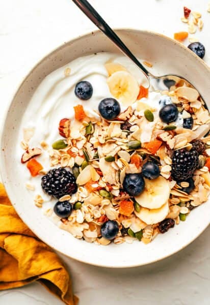 - Parfait-style:ย Serve the muesli in a bowl with plain Greek yogurt and fresh fruit.