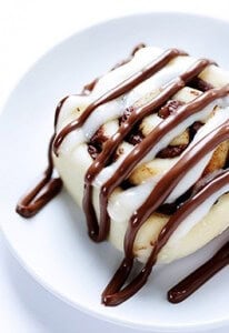 - Warm Nutella in the microwave for a few seconds to help make it more spreadable, if desired. Then use either a piping bag to pipe it onto the cinnamon rolls, or use a fork to drizzle it on.
