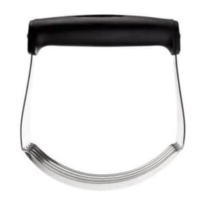 - Cut in the butter. Add the diced butter and use a pastry cutter or two forks (or a food processor, see below) to cut the butter evenly into the dry ingredients until the mixture is crumbly and the butter forms no larger than pea-sized chunks.