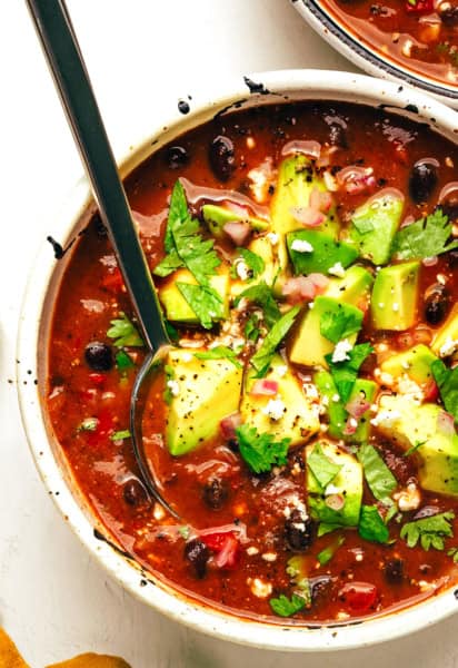 This quick black bean soup recipe is full of flavor and protein and comes together in less than 30 minutes!