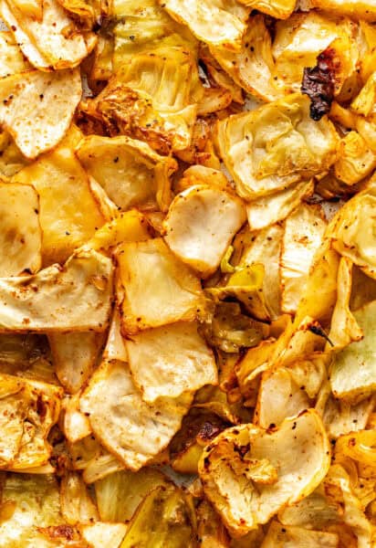 - Roast. Roast for 20–25 minutes, tossing once at the 15-minute marker, until the cabbage is tender with deeply caramelized, browned edges.