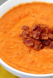 Roasted tomato soup meets…BACON!