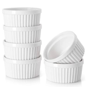- Prep oven and ramekins. Heat oven to 325°F. Place 4 (6-ounce) ramekins side by side in a large baking dish. Place a kettle of water on the heat to boil.