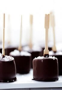 - Remove and dip each banana in the magic shell until covered. (You can dip all the way, or just halfway.) Sprinkle with sea salt and place back on cold baking sheet until dried.