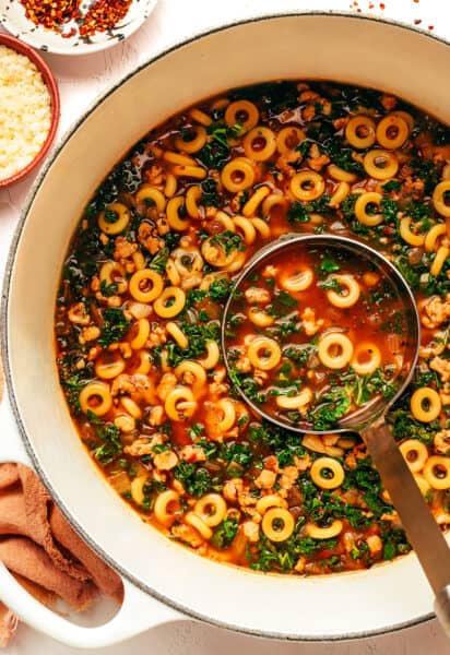 - Cook the pasta. Stir in the anelli siciliani and cook, stirring occasionally, until the pasta is al dente. Add additional broth as needed to reach your desired soup consistency.