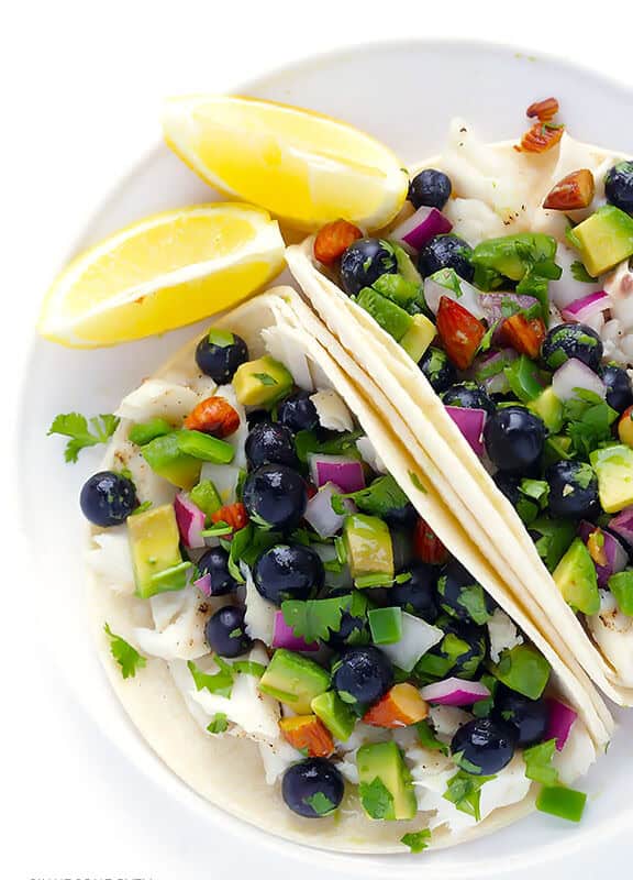 Fish Tacos with Blueberry-Almond Salsa