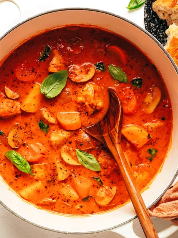 Feel free to serve it with any of your favorite sides. Or you’re also welcome to saute some veggies in there along with the chicken, and toss everything together in the sauce. (<– Although if you add tons of veggies, I’d recommend making a little extra sauce.)